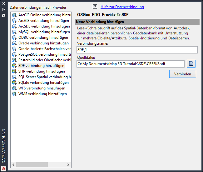 Stellen Sie eine Verbindung zu der erstellten SDF-Datei her.