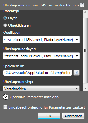 Wenn der Arbeitsablauf Parameter für eine oder mehrere Arbeitsschritte erfordert, wird eine Eingabeaufforderung angezeigt.