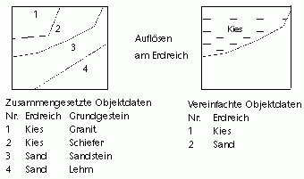 Beim Auflösen einer Topologie überprüft AutoCAD Map 3D toolset für alle Grenzlinien zwischen Polygonen, ob sich die Werte im Feld Auflösen entsprechen. Wenn dies der Fall ist, werden die Grenzlinie und einer der Zentroide gelöscht. Mit Ausnahme von Auflösen nach werden alle Objektfelder sowie alle neuen Topologiefelder entfernt.