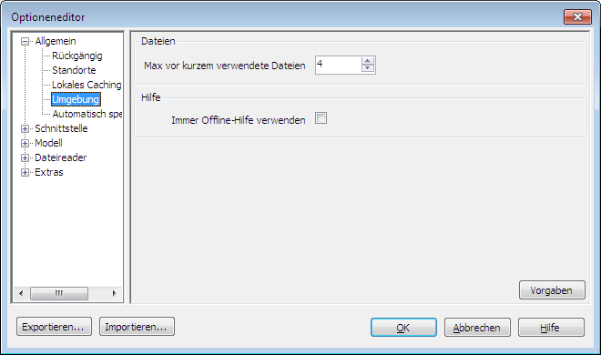 - Erweitern Sie im Optioneneditor den Knoten Allgemein, und klicken Sie auf die Option Umgebung.