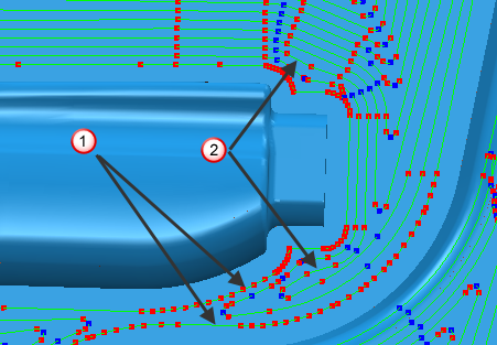 — Offset passes with reduced numbers of points.