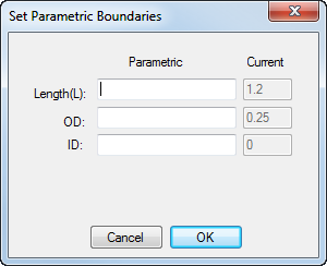 This dialog appears when you select Edit > Family of Parts Programming > Set Parametric Boundaries. To access this dialog select the Parametric Input check box in Preferences Dialog-Turning.