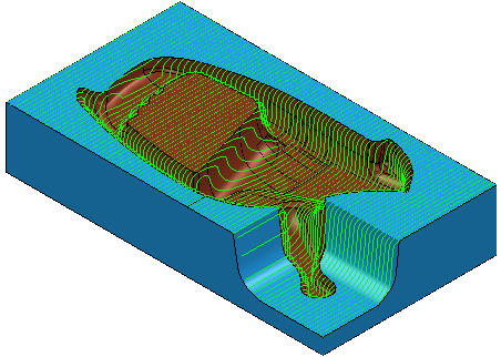 Raster toolpaths are often used on open parts and are best-suited to rectangular models. This is a robust machining strategy that works well on many models except for areas that are vertical (or near-vertical).