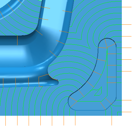 Allow tool outside flats —Select this option to allow the tool to go outside the flat area. This alleviates the problem of running the tool along a sharp edge.