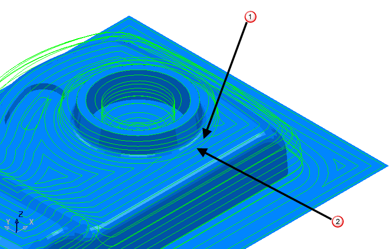 — Shows the Constant Z toolpath stepdown in the steep areas.