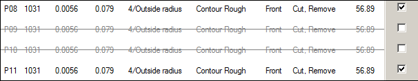 PartMaker uses a strikethrough to denote processes that are excluded from simulation and postprocessing. For example: