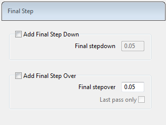 Use the Final Step page to specify values for the final stepdown and final stepover. These final values are usually smaller than the normal stepover and stepdown values.