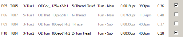 Status — When the Status option is selected for a process, PartMaker includes the process in simulation and in postprocessing.
