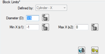 Min X and Max X — Enter the minimum and maximum X values of the cylindrical block.