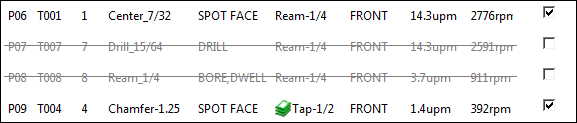 Status — When the Status option is selected for a process, PartMaker includes the process in simulation and in postprocessing.