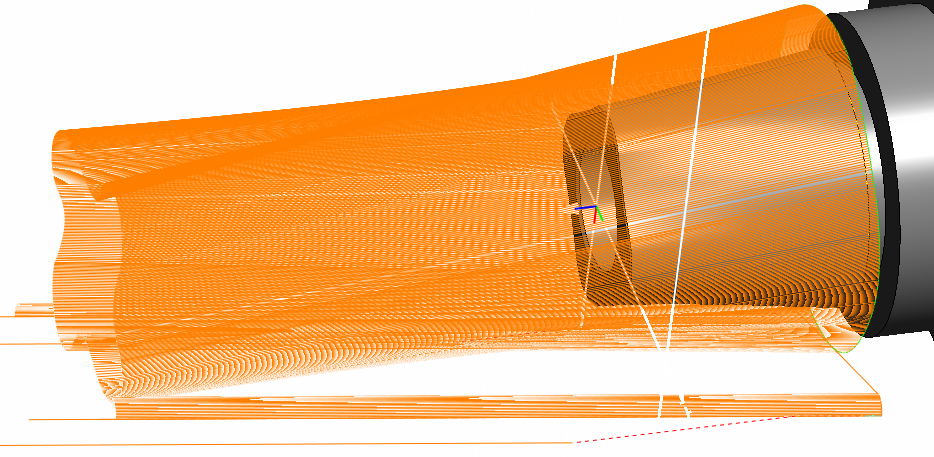 Use this menu option to display the tool axes for 4- or 5-axis simultaneous toolpaths or toolpaths imported from a PowerMill project.