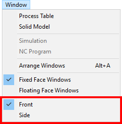 When you have multiple CAM Face windows, you can quickly switch between them by selecting the name of the Face window you want to display from the Window menu. For example: