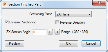 ZX Sectioning Angle — Specify the ZX Section Angle where the part will be sectioned.