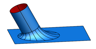 Eine Übergangsfläche bildet eine glatte Verbindung von einer Fläche zu einer Gruppe von Flächen. Sie verlässt die erste Fläche tangential und wird mit der Gruppe von Flächen verbunden, um einen glatten Übergang zwischen diesen sicherzustellen: