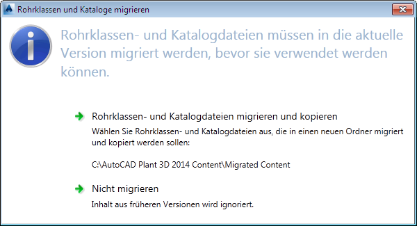 Klicken Sie auf Rohrklassen- und Katalogdateien migrieren und kopieren.