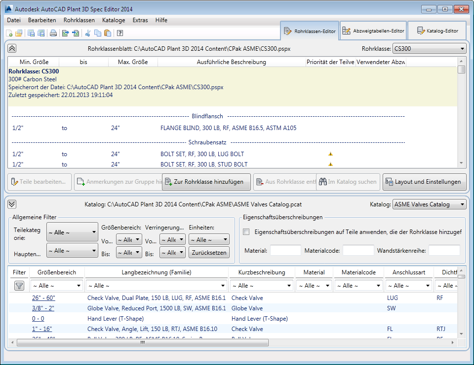 Ermöglicht die Erstellung und Bearbeitung von Rohrklassenblättern.