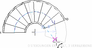 Mithilfe des Werkzeugs Spirale durch Mittel- und Endpunkte können Sie spiralförmige Treppenläufe über weniger als 360 Grad erstellen.