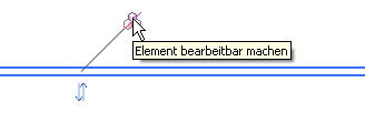 Elemente, die von Ihnen nicht bearbeitet werden können, werden mit dem Symbol Element bearbeitbar machen angezeigt, wenn Sie sie im Zeichenbereich auswählen.