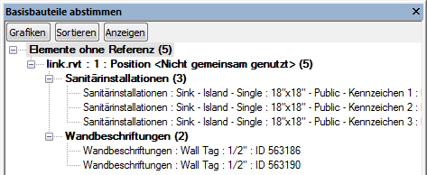 Suchen Sie verwaiste Elemente, deren Verknüpfungen zu den dazugehörigen Elementen des Grundmodells verloren gegangen sind, und stimmen Sie sie ab.