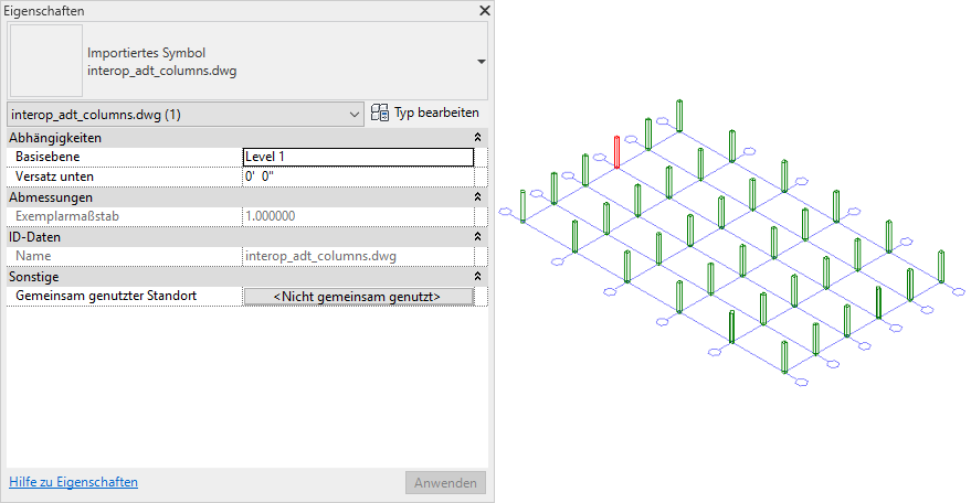 Aus importierten AutoCAD Architecture-Stützen erstellte Revit-Stützen