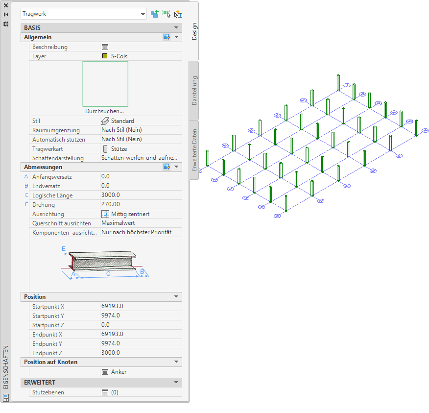 Stützen, Träger und Streben sind die Tragwerksteile in einem Gebäude. Sie können in AutoCAD Architecture erstellt und in Revit als Referenz importiert werden.