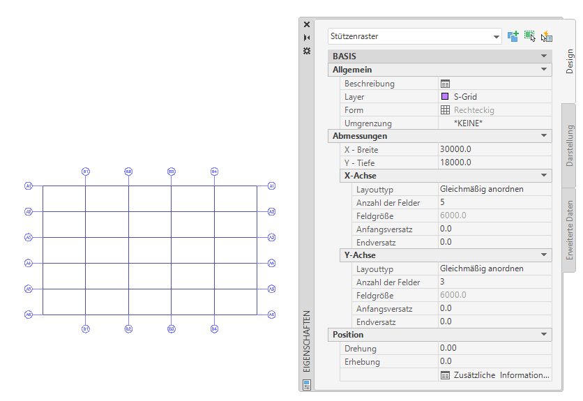 Die folgenden Eigenschaften eines AutoCAD Architecture-Rasters bleiben beim Importieren in Revit erhalten: