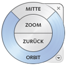 SteeringWheels sind Schnellauswahlmenüs, die dem Cursor folgen und die Werkzeuge für die Navigation in Ansichten zusammengefasst in einer Benutzeroberfläche bieten.