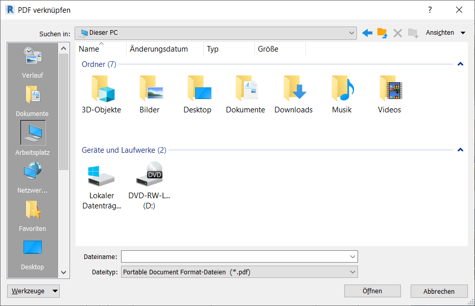 Anmerkung: Sie können keine PDF-Dateien im Familieneditor verknüpfen.