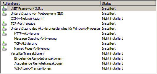 - Führen Sie einen Bildlauf nach unten bis zum Eintrag Rollendienste durch, und vergewissern Sie sich dass die folgenden Rollendienste installiert wurden: