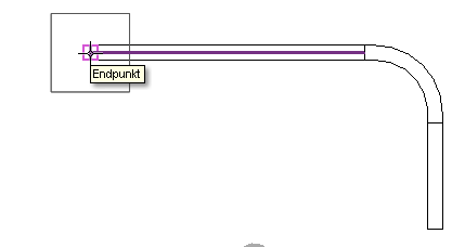 - Klicken Sie im Zeichenbereich auf den Endpunkt des Leerrohrs, an dem Sie das Verbindungsstück platzieren möchten.