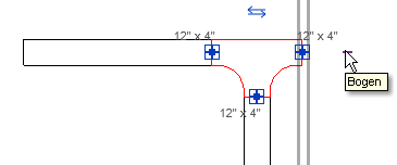 Um das T-Stück zurück in einen Bogen zu ändern, klicken Sie auf das Minuszeichen (-) neben dem Formteil.