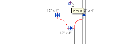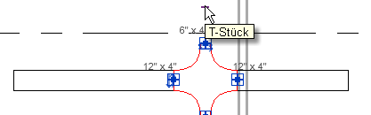 - Um das Kreuzstück zurück in ein T-Stück zu ändern, klicken Sie auf das Minuszeichen (-) neben dem Formteil.