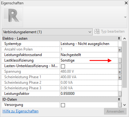 - Öffnen Sie ein elektrisches Gerät im Familieneditor.