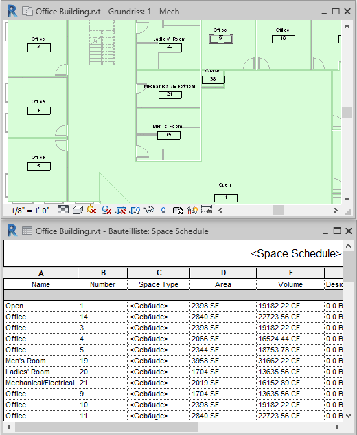 Raumlisten werden auf dieselbe Weise erstellt wie beliebige andere Bauteillisten in Revit.