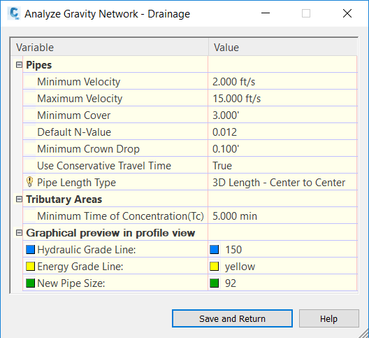 Note: The roughness coefficient assigned directly to each of the pipes is used for calculating EGL and HGL.