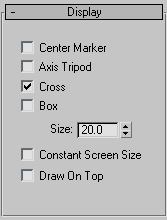 Lets you specify how the helper object appears in the viewports. By default, the display type is set to Cross only, and Size is set to 20.0. You can activate multiple display settings if you like.