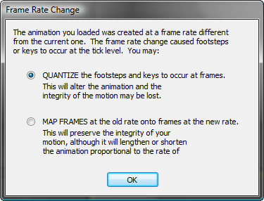 Biped opens this dialog if you load a BIP file onto a Biped, and the BIP was saved from a scene with a different frame rate than the current scene.