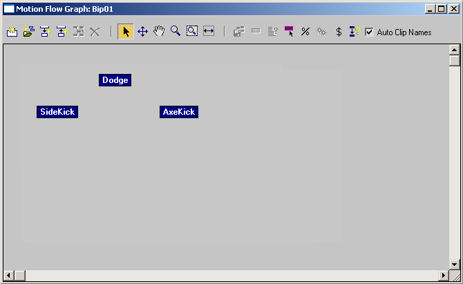 A new script appears in the script drop–down list and the appended sequence of clips appears directly below the original sequence of clips in the Motion Flow Graph dialog. You might have to scroll down to see it.