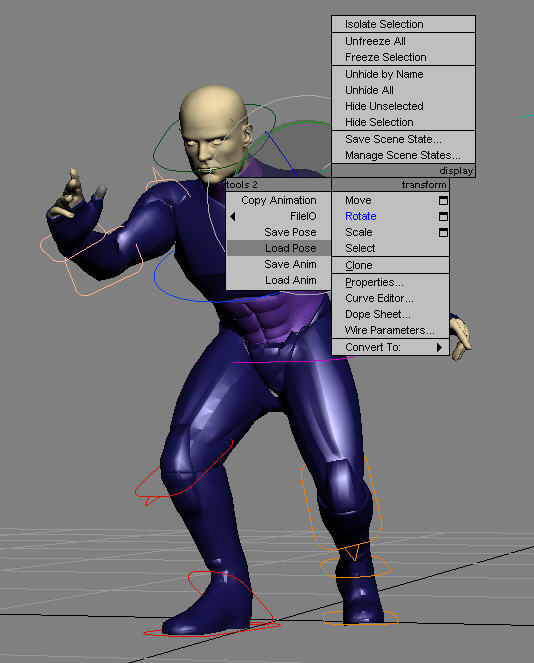 During loading, the artist has full interactive control over the transformation and mirroring of the pose or animation during load.
