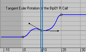 You can control a biped's position and orientation using Euler curves in addition to quaternion curves in the Workbench and Curve Editor. Using the Euler XYZ controller is an efficient way to animate your biped because you can use Bezier tangents to change the interpolation of your XYZ curves (quaternion curves do not have tangents). To learn more about how the Euler XYZ and TCB Rotation controllers differ from each other, refer to Euler XYZ Rotation Controller.