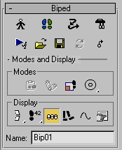 - The Name field lets you change the name of the biped. When you change the name in this field, the center of mass is renamed and the entire biped hierarchy inherits the new name.