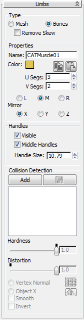 - Set the CATMuscle parameters as desired. In particular, set Type to Bones if you’ll be using it with the Skin modifer, or set it to Mesh when intended for use with Skin Wrap.