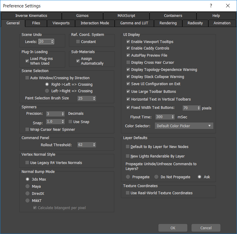 3ds Max offers many options for its display and operation. These options are available on the Preference Settings dialog in a series of tabbed panels.