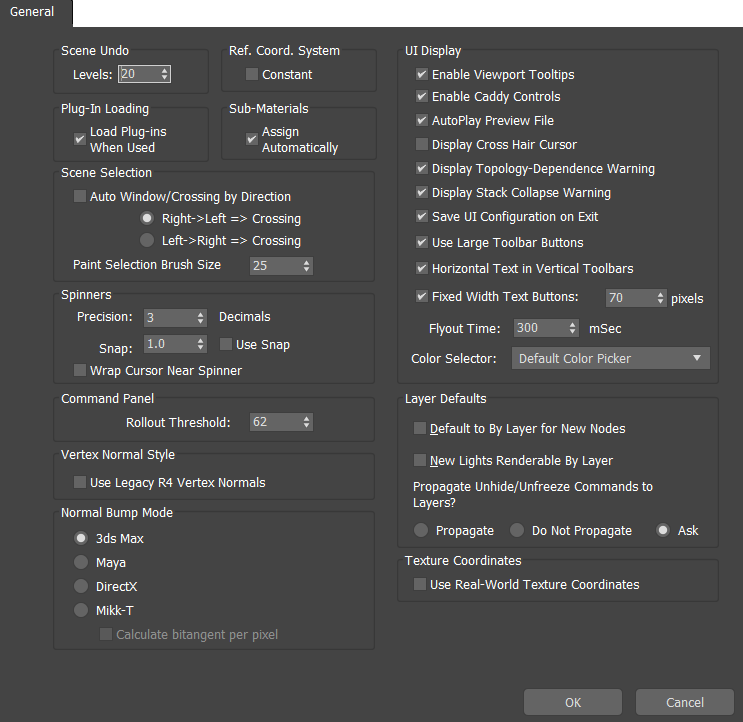 - Toggles the stack collapse warning, which appears if you choose to collapse the modifier stack. You can also turn off the warning on the warning dialog. Default=on.
