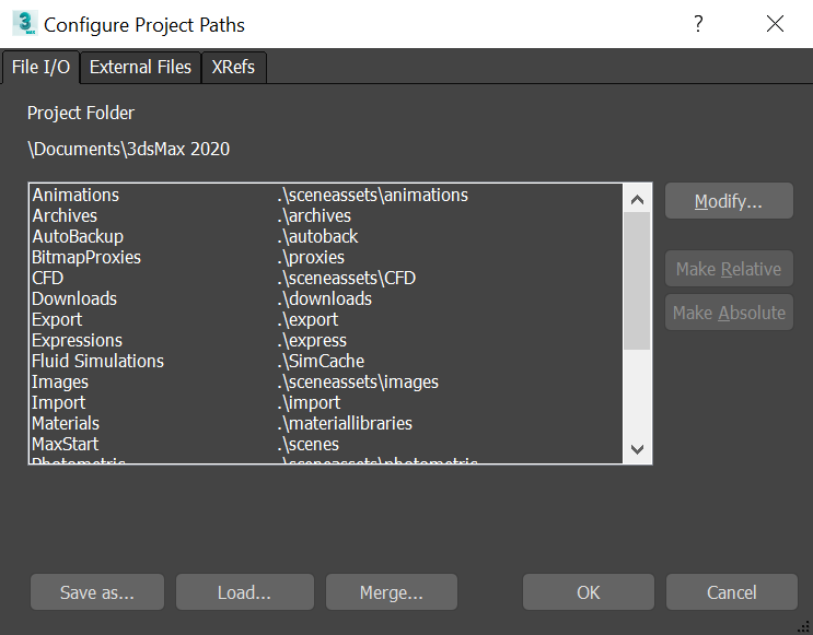 1. On the Configure Project Paths dialog, click the File I/O panel, and choose a path entry.