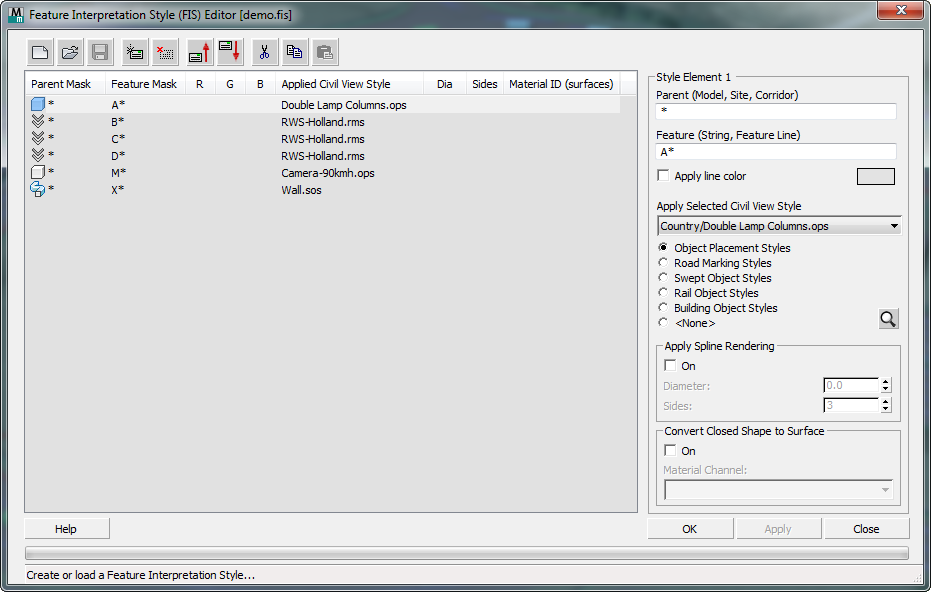 Each style element includes masks for the parent and feature. These let you apply a Civil View style definition to that particular imported feature.