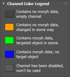 Toggles a channel on and off. Inactive channels do not affect the morph result. Use this control to turn off certain channels to focus on animating other channels.