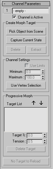 If the active morph target entry in the channel list is empty, this button is unavailable, and displays the text “No Target to Reload.”