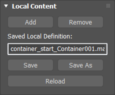 The box returns to its previous status, with one difference: On the Local Content rollout, the Saved Local Definition field contains the name of the saved container. When a container has a local definition, that effectively means you’re the container’s owner, although it doesn’t necessarily mean you have full control of its contents; this will become clearer later in the tutorial.