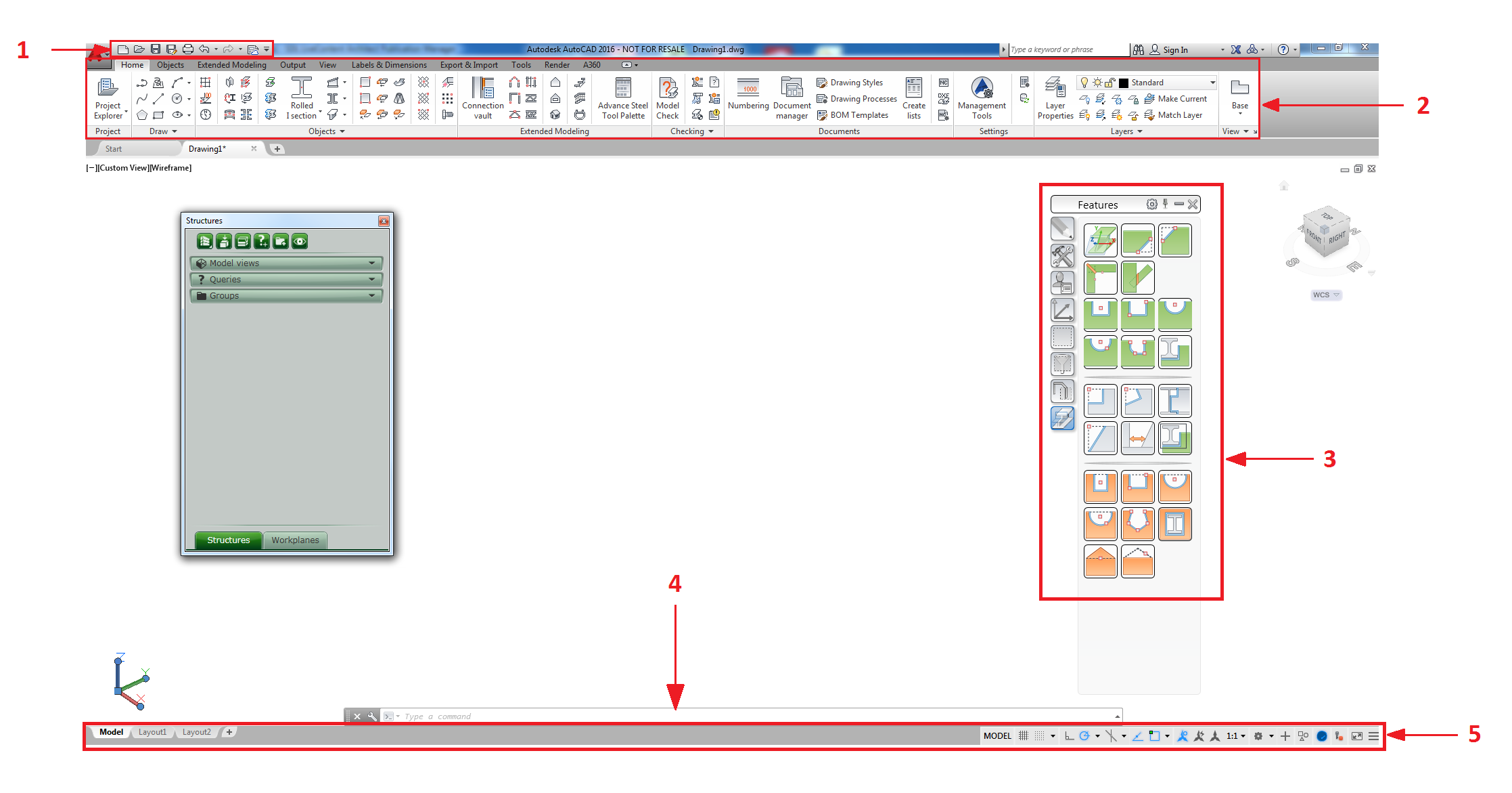 - Provides fast access to the most frequently used tools. To add an Advance Steel tool to the Quick Access Toolbar, right-click the ribbon button and select Add to Quick Access Toolbar form the contextual menu.